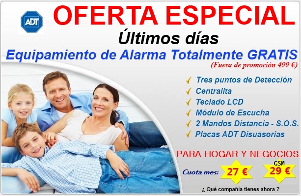 Ante el cambio de Normativa según la Ley de 18 de Febrero de 2011, Instale ADT en su Hogar ó Negocio GRATUITAMENTE, y no gaste de nuevo con su actual compañia comprando el equipamiento necesario para Adaptarse a la Nueva Legislación vigente.